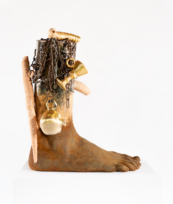 2025, glazed ceramic, 24 carat gold leaf, steel, copper, 78 x 68 x 25 cm