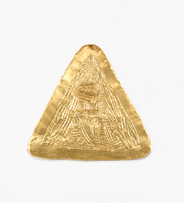 UNTITLED 2025, glazed ceramic, 23 carat gold leaf, 60 x 64 x 4 cm