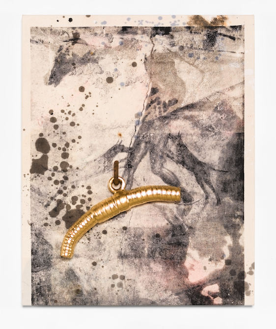 EGO IN ARCADIA 2025, silk screen on canvas, glazed ceramic, 24 carat gold leaf, steel, 100 x 80 x 10 cm